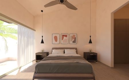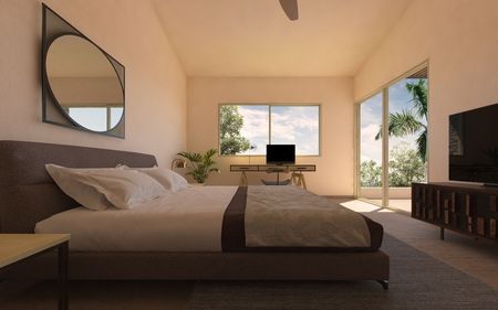 - 3 recamaras cada una con baño completo, la principal con vestidor y lavabo doble, 2 cuentan con amplio balcón compartido con vista al jardín y la alberca.